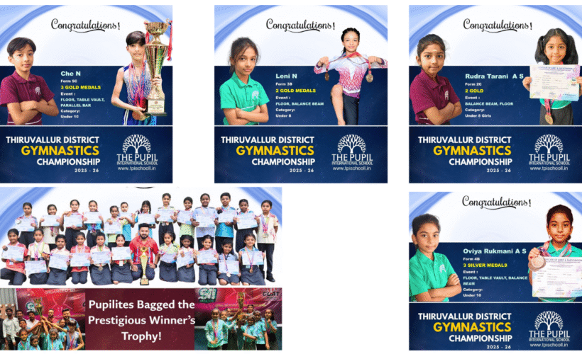 We are delighted to announce that our students participated in the Thiruvallur District Gymnastics Championship 2025–26 and delivered an exceptional performance. They secured multiple medals across various events and categories, showcasing their talent, determination, and sportsmanship. Adding to this achievement, our team proudly bagged the prestigious Winners’ Trophy, bringing great honour to our school. Congratulations…