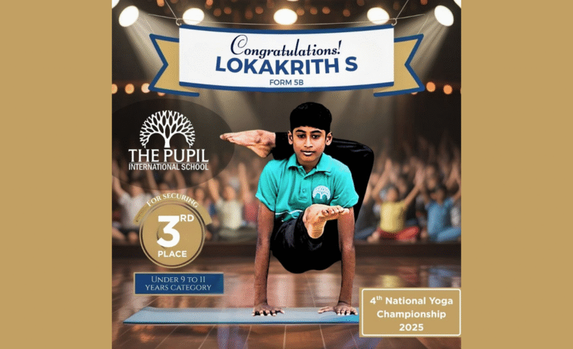 We are delighted to announce that Lokakrith S of Form 5B, a consistent achiever in yoga, has secured Third Place in the prestigious 4th National Yoga Championship 2025. This national-level event was organized by the Goa Youth India Yoga Federation, International Youth Yoga Federation, and the Indian Yoga Federation – Tamil Nadu State Chapter, and…