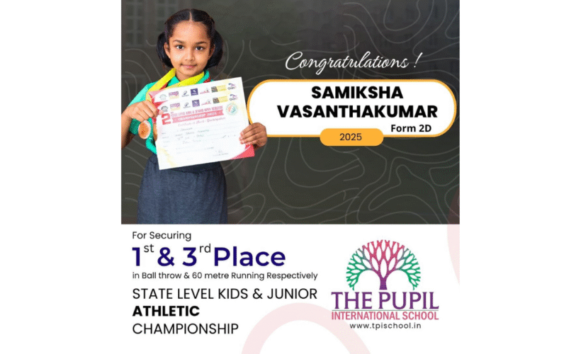 On 27th June 2023, The Pupil International School proudly congratulates our talented student, C. Praghathi, for her exceptional performance in securing the third position in the District Level Kids Badminton Tournament 2023 organized by the renowned Tamilnadu Multi Sports Academy. Praghathi’s dedication and hard work have paid off splendidly, inspiring us all. Wishing you continued…