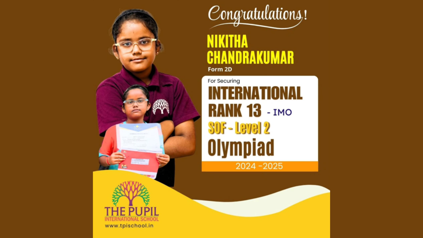 We are proud to announce that Nikitha Chandrakumar of Form 2D has secured International Rank – 13 in the SOF International Mathematics Olympiad 2024-25.